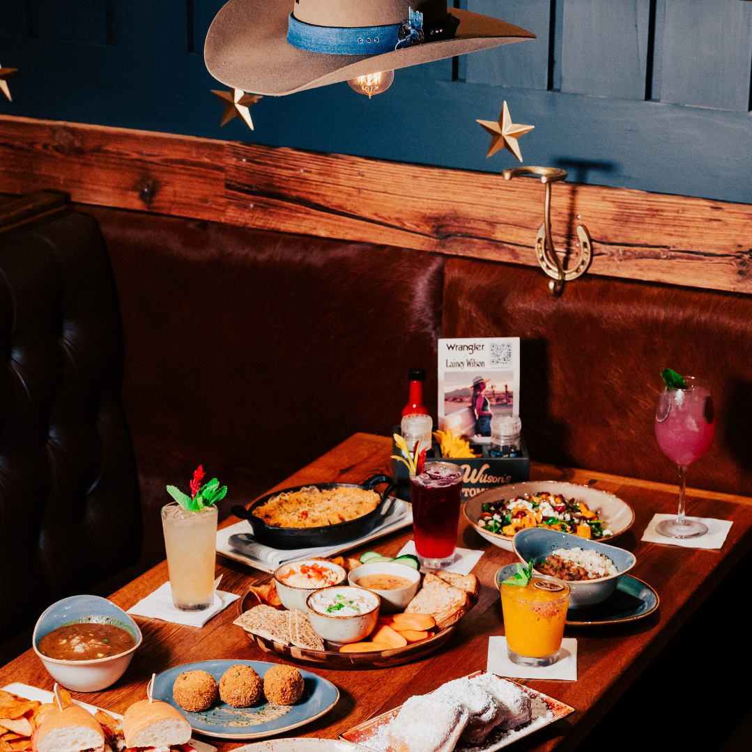 The menu at Bell Bottoms Up was crafted in collaboration with Lainey Wilson and Chef Tomasz Wosiak, blending bold Louisiana flavors with Nashville flair. Featuring some of Lainey’s favorites like Cajun pasta, shrimp boils, and fresh salads, the menu offers a mix of Southern comfort and lively shareable plates. Pair it with a signature cocktail, and you’ve got the perfect recipe for a night out.
