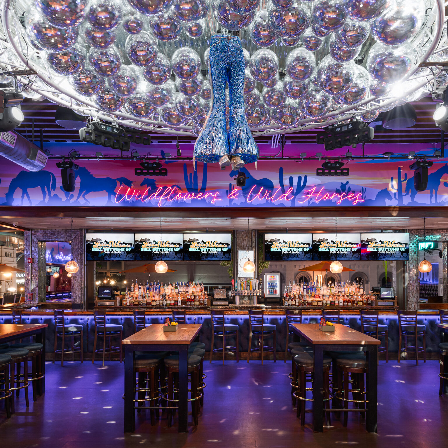 Bell Bottoms Up is a tribute to Lainey’s journey and the rich culture of Louisiana, all set in the heart of Nashville. Every inch of the venue tells a story, from the cowgirl hat chandeliers to the retro-glam rooftop. With three levels of live music, a champagne lounge, and a basement-level Bayou Keys, it’s a place where every night feels like a celebration.